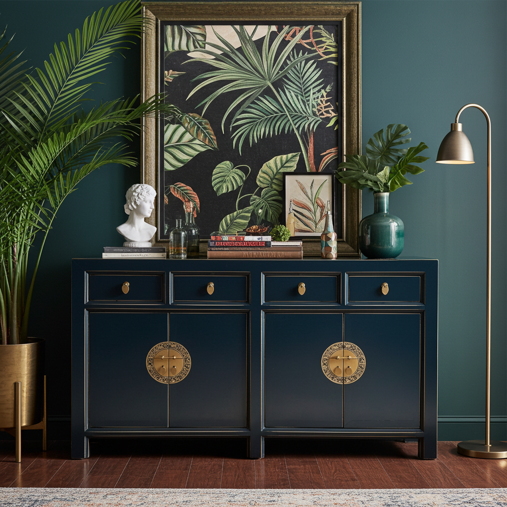 Vintage Asia Orientalische Kommode Sideboard Schrank Blau-Orange - Art. 34372-1
