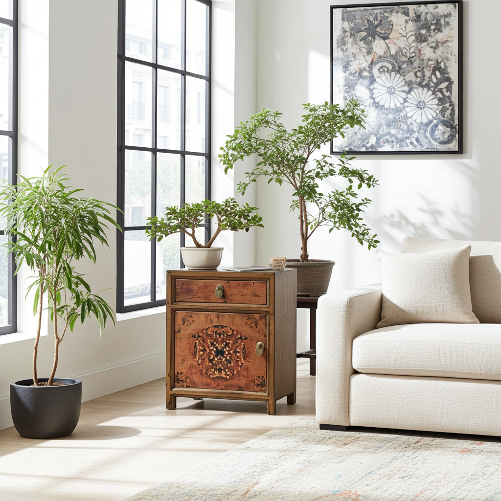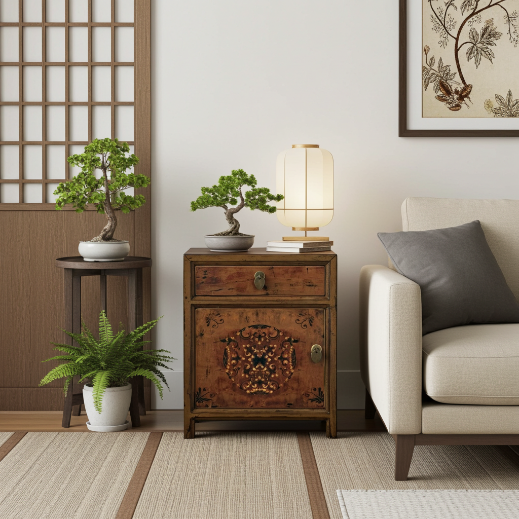 Mesita de noche vintage asiática china marrón - Artículo 35191-7