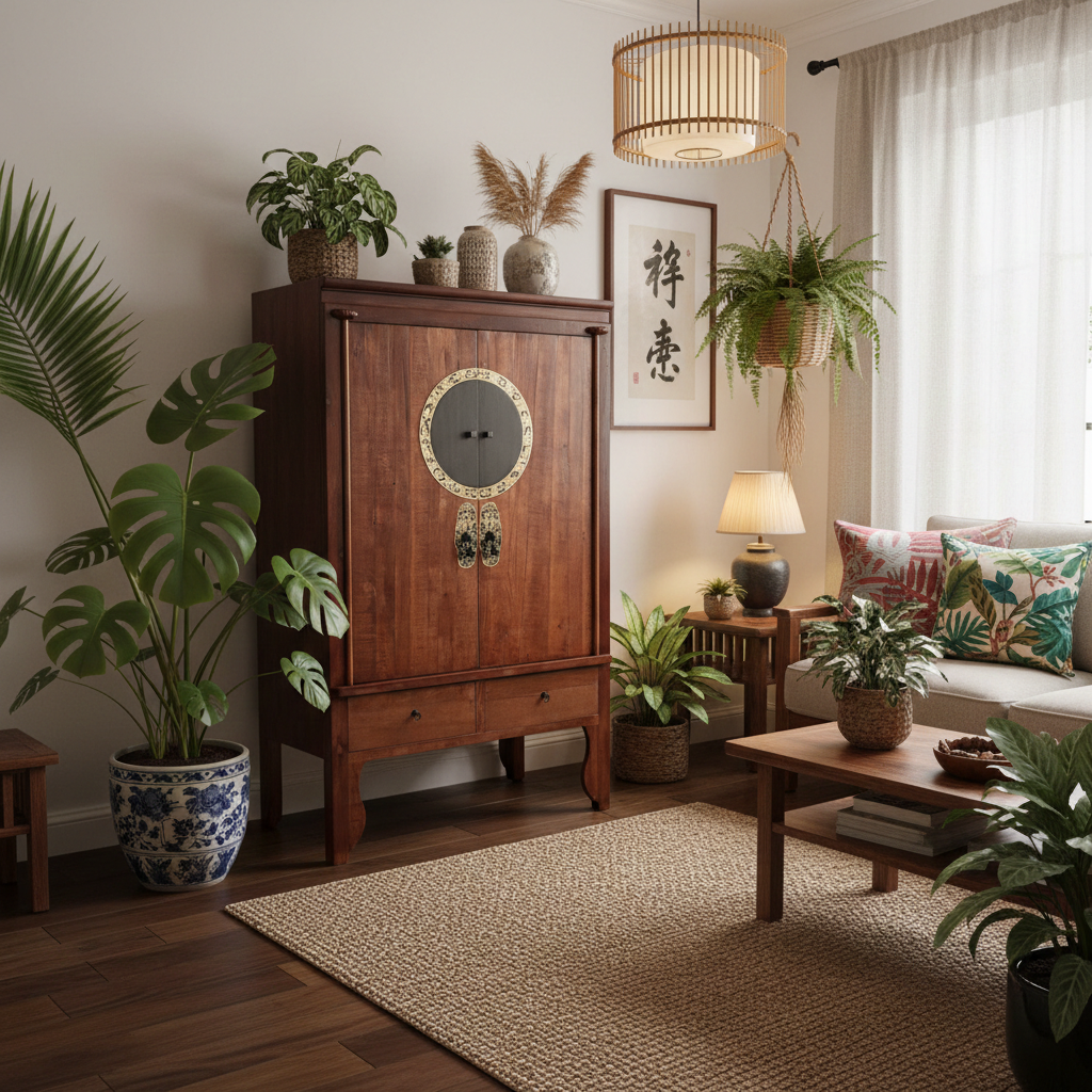 Armoire de mariage vintage asiatique chinoise marron châtaignier - Art. A502/maroon