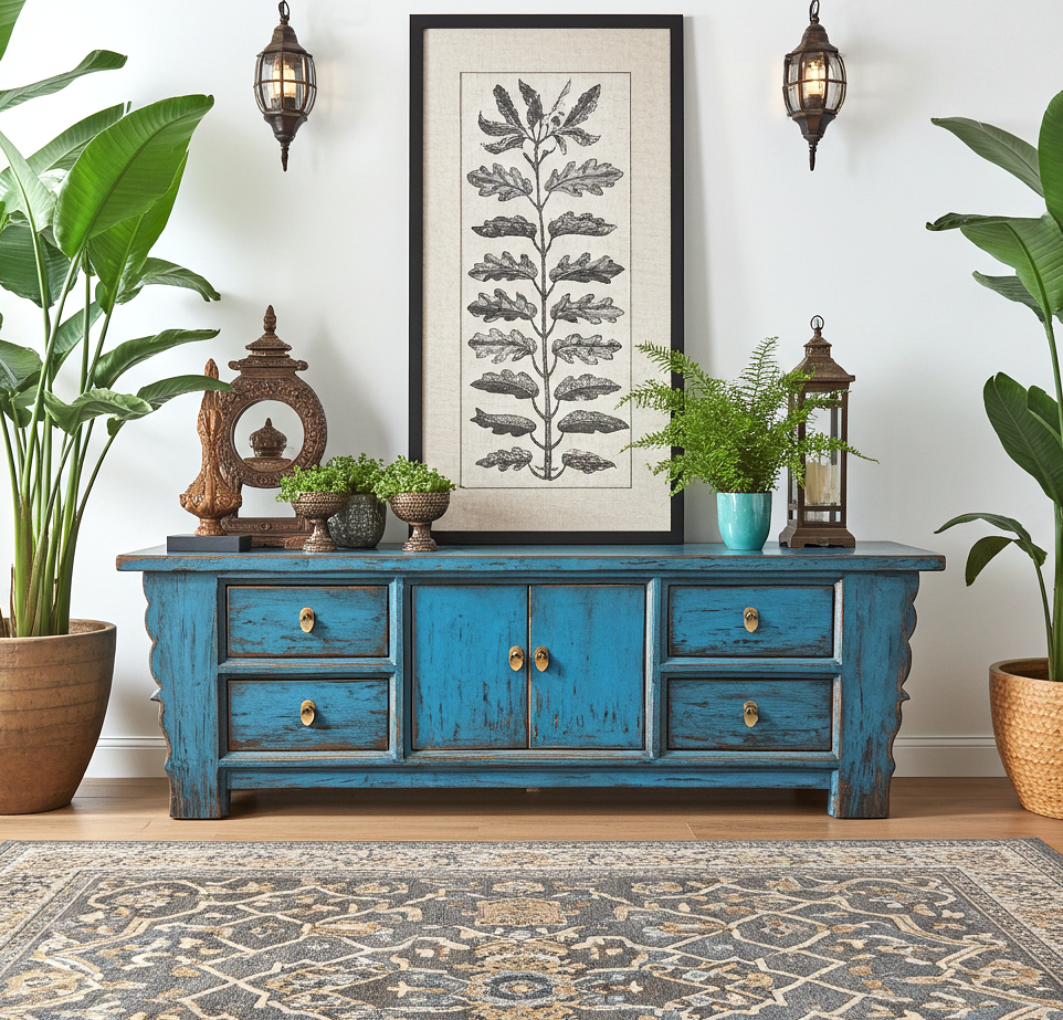Vintage Asia Asiatisches Lowboard Kommode Bank Blau - Art. 35208-1