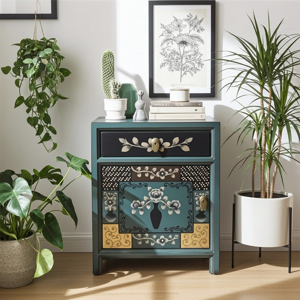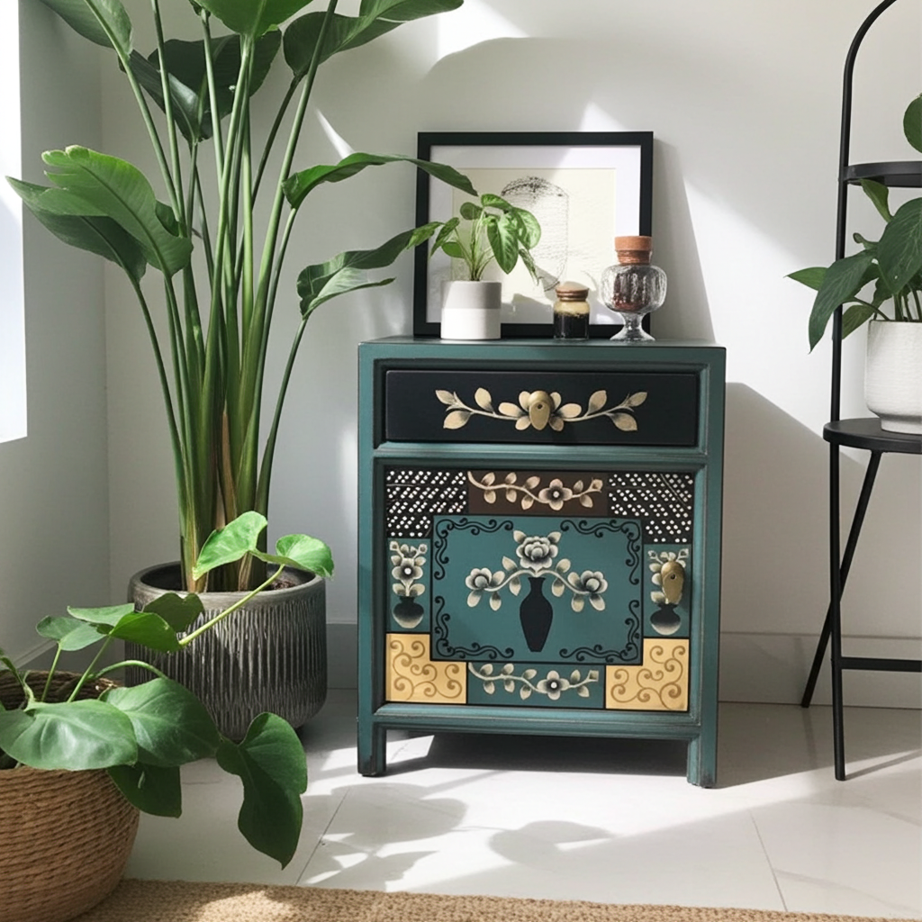 Vintage Asia Chinesisches Nachtkästchen Nachttisch "Oceanflowers" - Art. 35191-6