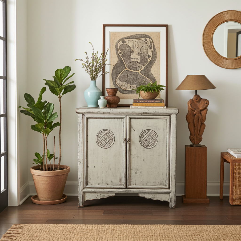 Vintage Asia Orientalisches Kästchen Schrank Kommode Hellgrau - Art. 42719